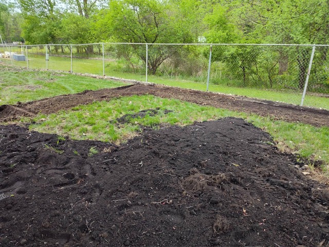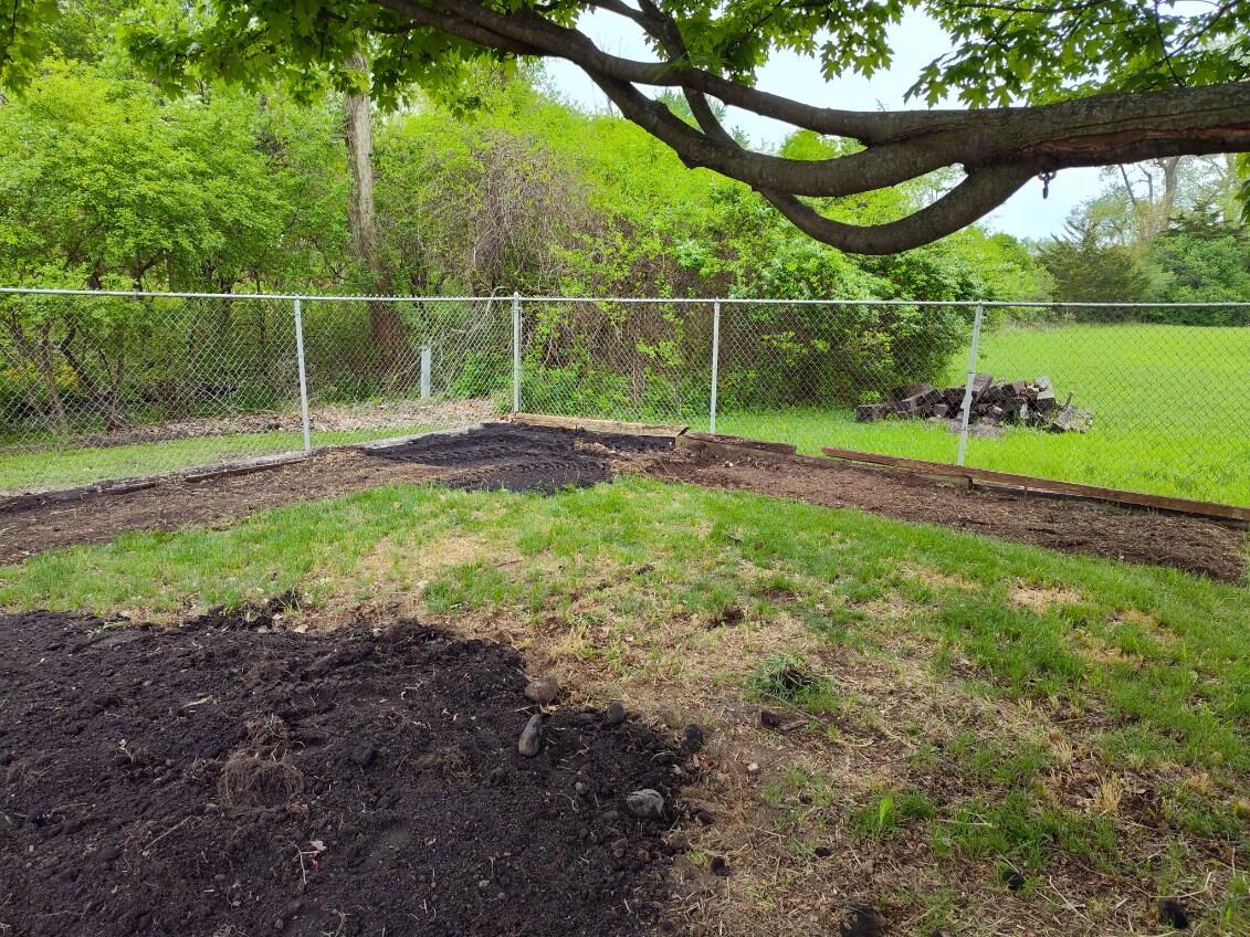 Here are a couple of pictures of starting the process of tilling up are back yard and getting dirt from Seth’s Produce this year. A group from the Urbana Nazarene Church came and built us an arbor with a bench! They also cleaned up our fence line.