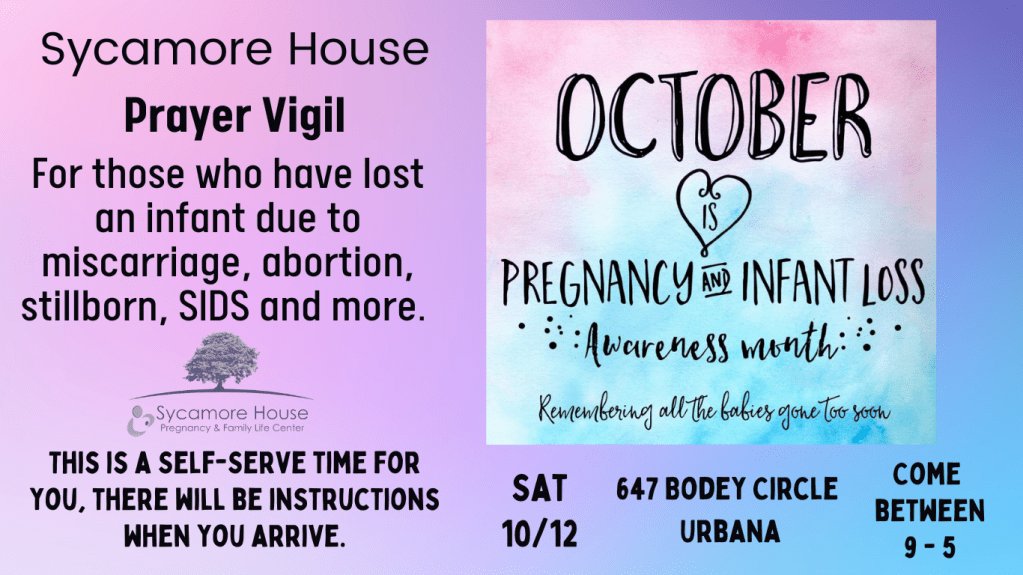We are hosting a prayer vigil throughout the day for remembrance of little ones lost too early.