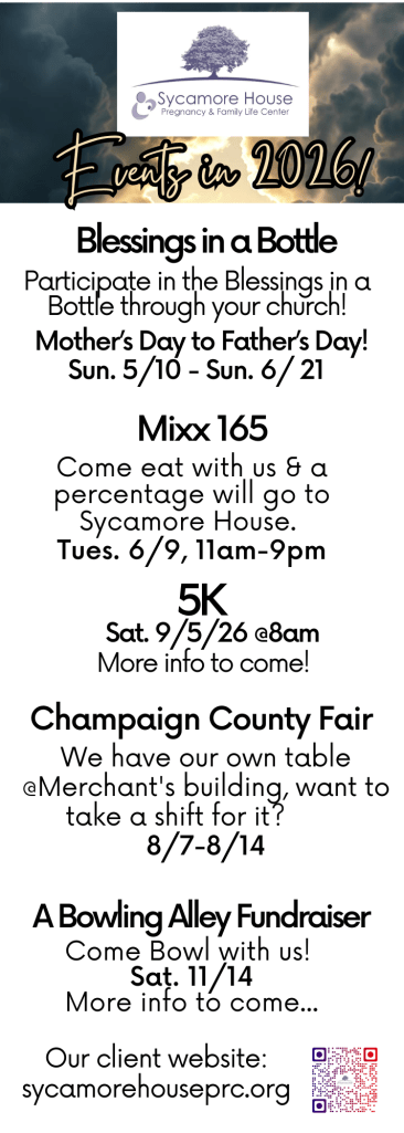 Here is what is going on through the year and we will be having a separate information page for our big events such as Blessings in a Bottle, our 5K, and our Bowling Fundraiser.